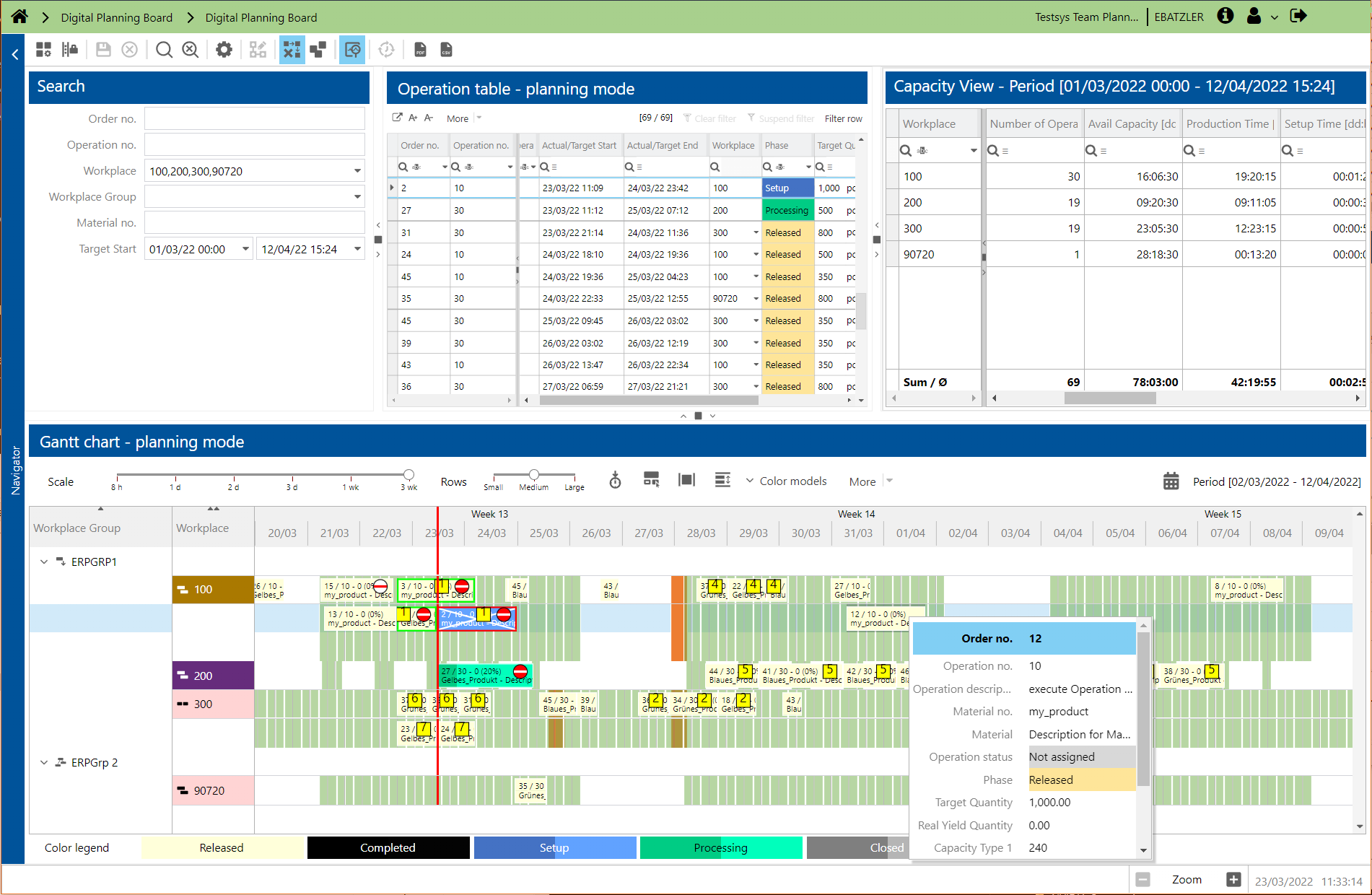 Digitale Plantafel zur Überwachung, Verwaltung und manueller Planung von Arbeitsvorgängen in der Fertigung (Shopfloor) |